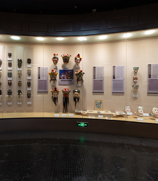《民(mín)族民(mín)間面具(jù)》内容分(fēn)為(wèi)五個單元;“跳神面具(jù)”、“生命禮儀面具(jù)”、“節日祭祀面具(jù)”、“戲劇面具(jù)”、“鎮宅面具(jù)”。“跳神面具(jù)”以藏族“羌姆”面具(jù)為(wèi)代表,展示了祈福禳災宗教活動中(zhōng)所使用(yòng)的面具(jù);“生命禮儀面具(jù)”展示了在成年禮、婚禮、喪禮等重大人生禮儀中(zhōng)所使用(yòng)的面具(jù);“節日祭祀面具(jù)”以各地彜族歲時活動面具(jù)為(wèi)代表,展示了以祭神祭祖、祈求農業豐收、人口繁衍為(wèi)主題的節日祭祀活動中(zhōng)所使用(yòng)的面具(jù);“戲劇面具(jù)”展示了至今仍流傳于民(mín)間的傩戲、關索戲、傣戲、壯戲等雲南地方戲劇、民(mín)族戲劇面具(jù);“鎮宅面具(jù)”展示了以水族、彜族吞口為(wèi)代表的鎮宅護院、驅邪避災面具(jù)。所展示面具(jù)材質(zhì)多(duō)樣,有(yǒu)木(mù)、紙、陶、布、葫蘆、稻草(cǎo)、筍殼、棕皮等,制作(zuò)工(gōng)藝有(yǒu)雕刻、紙糊、編織等。