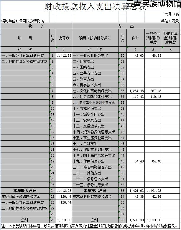 雲南民(mín)族博物(wù)館2016年度部門決算報表